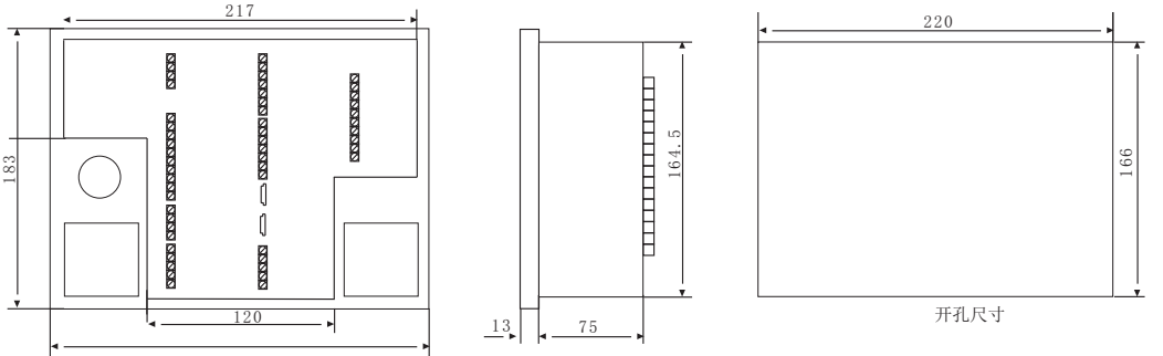 安裝方式:屏裝(開(kāi)孔尺寸:220×166mm) |