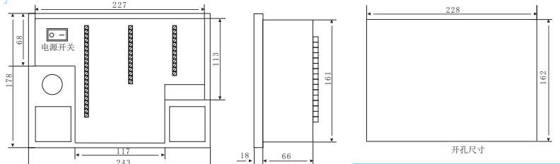 安裝方式:屏裝(開孔尺寸:220×166mm) |
